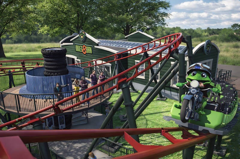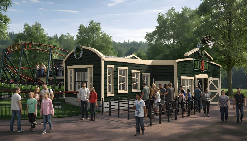 De nieuwe Kikker8baan bouwt voort op die traditie. De baan behoudt de herkenbare dubbele “acht”-vorm van het origineel, maar is volledig opnieuw gebouwd. De attractie krijgt een motorcross-thema, een verwijzing naar de motorsportgeschiedenis van het landgoed Duinrell, waar in de jaren veertig en vijftig crosswedstrijden werden georganiseerd.