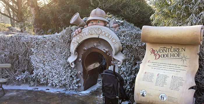 Gisteren bleek dat de heggen op de Pardoes Promenade bij Symbolica plotseling wit zijn. Halverwege de haag voor het Paleis der Fantasie houdt de witte kleur abrupt op. Vandaag kreeg het Avonturen Doolhof naast Monsieur Cannibale dezelfde behandeling. Een Efteling-woordvoerder bevestigt dat het winterse uiterlijk te maken heeft met de opnames.
