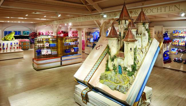 Souvenirwinkel In den Ouden Marskramer opende in 1977 als een binnenplaats. Binnen waren er twee loketten. Bij de informatiebalie kon je terecht voor vragen, folders en bijvoorbeeld het huren van videocamera’s. De balie voor souvenirs verkocht destijds kleding, ansichtkaarten, aardewerk, knuffels en posters. In 1993 werd de binnenplaats overdekt. Sinds de renovatie in 2009 vind je in de winkel een enorm sprookjesboek met een levensecht kasteel van Doornroosje.